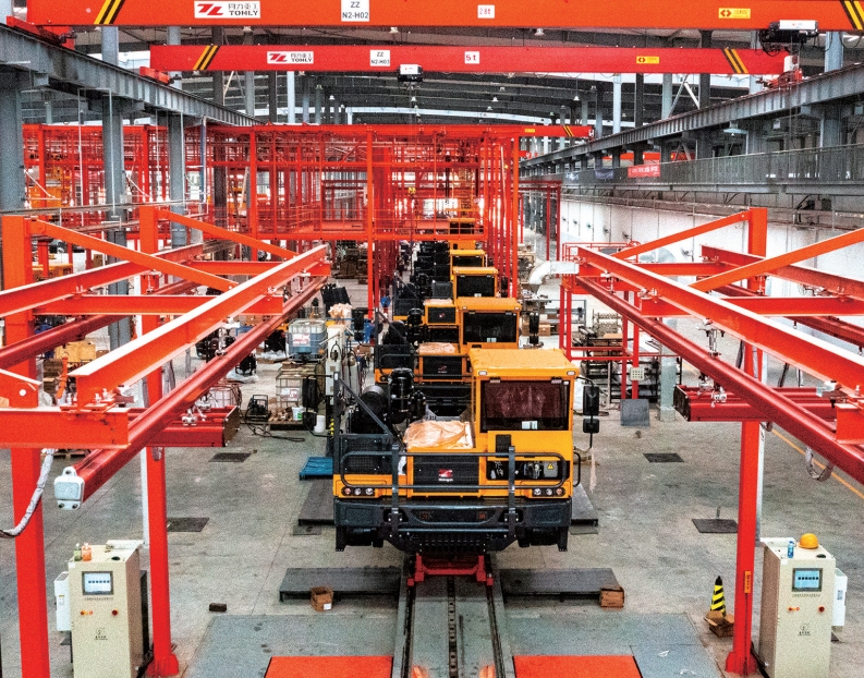在陕汽重卡扩能基地总装车间,无人搬运车在地面往来穿梭,全自动零部件在空中有序输送。在这里,不到5分钟就可以装配一辆重卡,一条生产线可同时装配10多款车型,是国内重卡领域最快的柔性生产线之一。