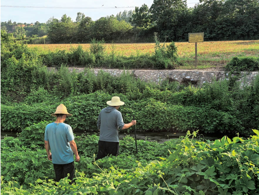 2024年7月4日,宝鸡市生态环境局岐山分局工作人员沿小韦河流域开展徒步排查工作。张静 摄