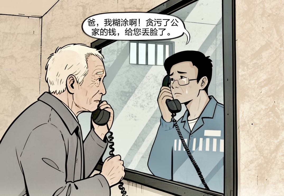 吴明面带愧色:“爸,我糊涂啊!贪污了公家的钱,给您丢脸了。”