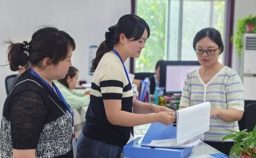 勉县纪委监委干部在勉阳街道便民服务中心开展镇村纠治“四风”工作落实情况监督检查。吴岢青 摄