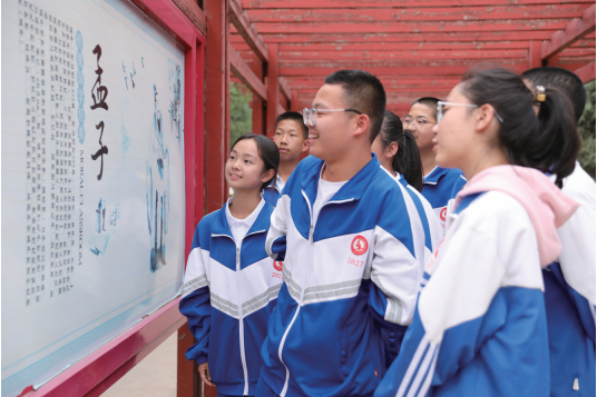榆林市第十三中学学生在清风走廊学习中华优秀传统文化。秦川儿摄