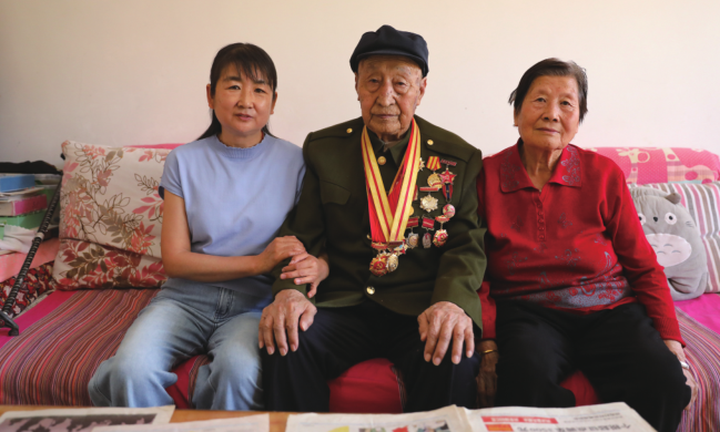 脑萎缩、听力衰退正在将这位老兵拉入一个寂静的世界,但那身挂满奖章的军装又在提醒我们,老兵的故事很长,老兵的人生很精彩。