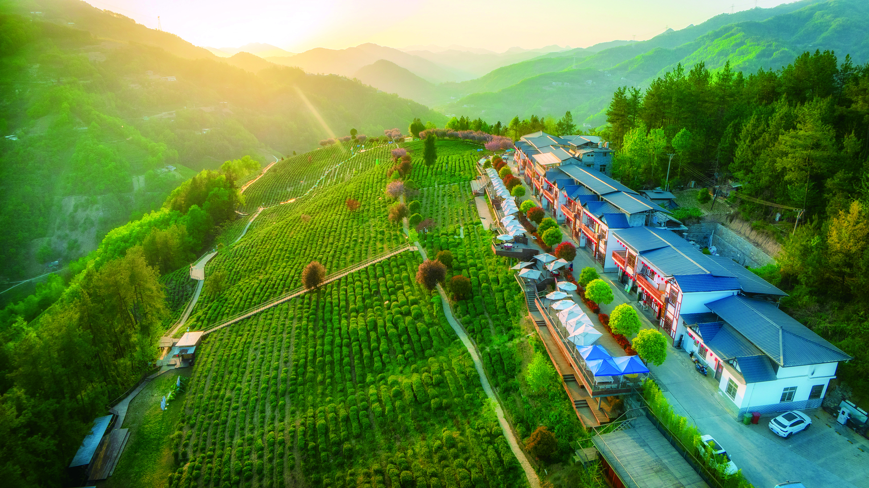 紫阳县富硒茶观光园航拍图。(紫阳县纪委监委供图)