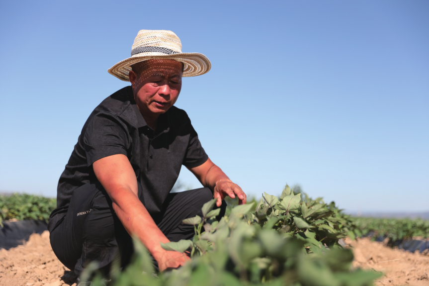 秋日正午的阳光依然火辣辣的,茂密的红薯叶铺满了田地。孙科蹲下身,拨开红薯叶,伸手压了压地膜,感受土壤的软硬与干湿。