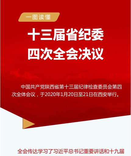 中国共产党陕西省第十三届纪律检查委员会第四次全体会议决议(2020年1月21日中国共产党陕西省第十三届纪律检查委员会第四次全体会议通过)中国共产党陕西省第十三届纪律检查委员会第四次全体会议,于2020年1月20日至21日在西安举行。全会传达学习了习近平总书记重要讲话和十九届中央纪委四次全会精神,听取了省委书记胡和平讲话,审议并通过了省委常委、省纪委书记王兴宁代表省纪委常委会所作的《充分发挥监督保障执行促进...