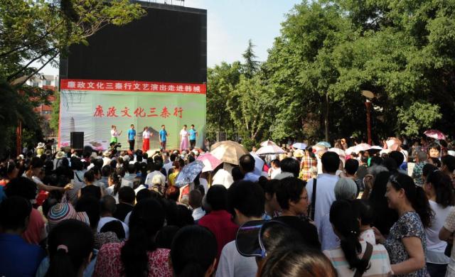 以活动为牵引,开展了新编秦腔历史剧《太尉杨震》和话剧《二万五》全省巡演活动,行程3600多公里,11个市区2万多观众现场观看演出;开展“廉政文化三秦行”巡演活动,三个演出小分队赴全省各市、县、区演出119场,现场观众累计40多万人,被群众誉为“家门口的廉政文化大餐”,产生了广泛影响;开展了“倡廉洁、树清风”廉政公益广告展播活动,我省获全国优秀组织奖,进一步扩大了廉政文化的覆盖面和影响力。